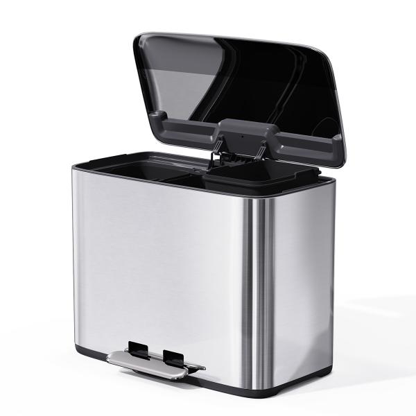 Silver Stainless Steel Pedal Step Open Garbage Can For Household Office Images |